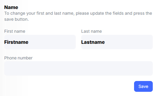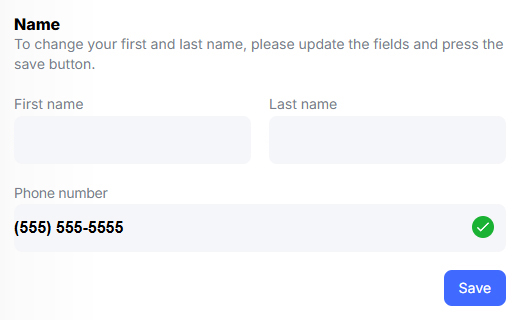 Below Name on the right, enter your Phone number then press the Save button.